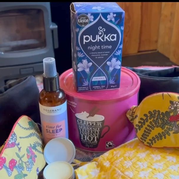 For £10 per person you can add everything for great sleep during your stay - a selection of face masks, organic cotton wheat bag hottie and recycled cotton Kantha cover, Fairtrade velvety hot chocolate by Clipper, and organic Night Time tea by Pukka.